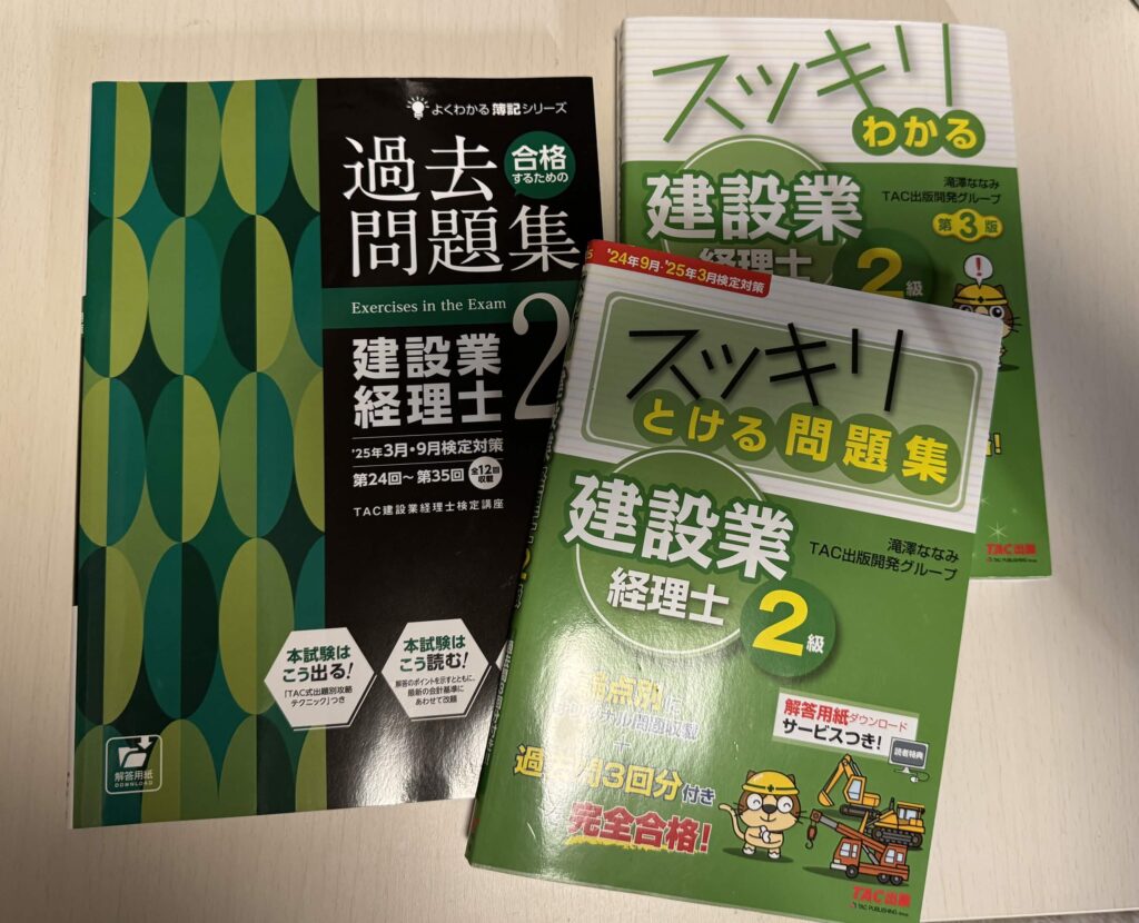 私が建設業経理士に1ヶ月で受かった際に使用していた教材は「スッキリわかるシリーズ スッキリわかる建設業経理士2級」のテキストとそれに対応した問題集、そして建設業経理士2級の過去問題集です。